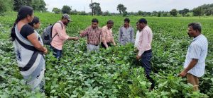 दि. १३.०९.२०२२ रोजी कृषी विज्ञान केंद्र, यवतमाळ, कृषी विभाग, यवतमाळ व पंचायत समिती, यवतमाळ यांच्या संयुक्त विद्यमाने “माझा एक दिवस माझ्या बळीराजासाठी” या अभियान अंतर्गत यवतमाळ तालुक्यातील धामणी गावामध्ये शेतकरी बांधवाना पंचायत समितीच्या शासकीय योजना व कृषी विभागाचे योजना, सूक्ष्म अन्न प्रकिया उद्योग, महा डीबीटी, ई-केवायसी, ई-पीक पाहणी, पोक्रा अंतर्गत फळबाग लागवड आणि इतर शेती पूरक व्यवसाय याविषयी सखोल मार्गदर्शन करण्यात आले. तर कृषी विज्ञान केंद्र, यवतमाळ अंतर्गत विद्यापीठाचे आधुनिक तंत्रज्ञान व कमी खर्चिक कीड व रोग व्यवस्थापन, शेती पूरक व्यवसाय तसेच विस्तार कार्यामध्ये कृषी विज्ञान केंद्राचे महत्व या विषयी मार्गदर्शन करण्यात आले. या प्रसंगी शेतकरी बांधवाच्या बांध्यावर श्री. मोरेश्वर आदमने यांचे कापूस, सोयाबिन पीक तसेच श्री. विनोद देशमुख यांचे सोयबीन पीकाची पाहणी करून शास्त्रज्ञांनी त्यांना मार्गदर्शन केले. या प्रसंगी कृषी विज्ञान केंद्राचे मा. डॉ सुरेश नेमाडे, वरिष्ठ शास्त्रज्ञ तथा प्रमुख, डॉ प्रमोद मगर, शास्त्रज्ञ (कीटकशास्र), श्री. मयूर ढोले, शास्त्रज्ञ (विस्त्रार शिक्षण) तसेच श्री. बाबाराव राठोड, सरपंच, धामणी, श्री. डी. के. किन्हाके, ग्रामसेवक, धामणी, श्री. एस. एस. मोहोड, कृषी सेवक, धामणी, श्री. उमेश बाहाळे, श्री. ओ.एस कोळपे, समूह सहायक, पोक्रा प्रकल्प, तसेच या कार्यक्रमास मोठ्या संखेने गावातील शेतकरी बांधव उपस्थित होते.